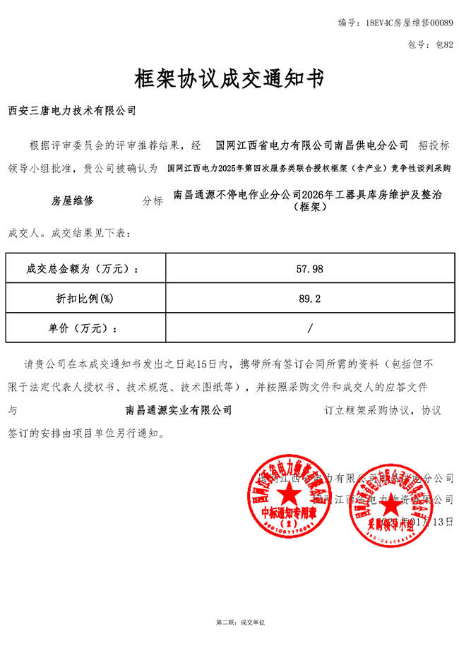 热烈祝贺我司“国网江西南昌通源不停电作业分公司2026年工器具库房维护及整治(框架)”