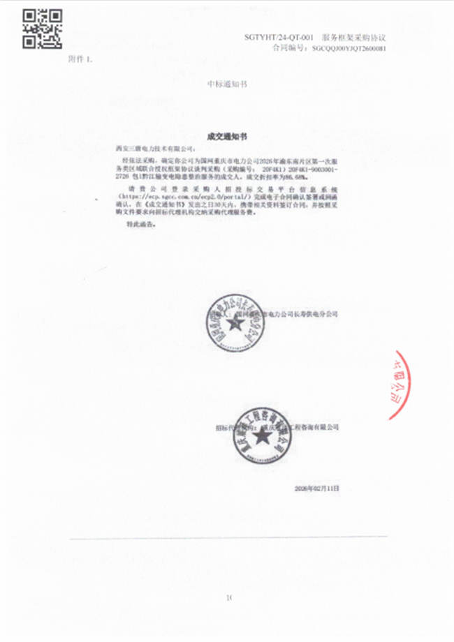 热烈祝贺我司中标“包1黔江输变电隐患整治服务”